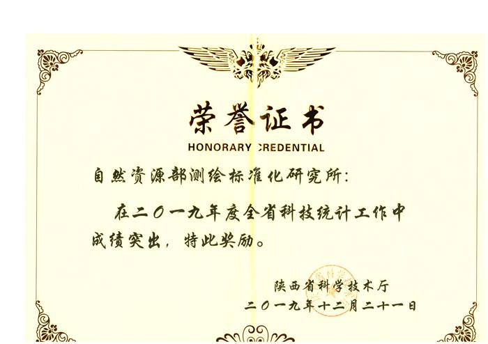 2019年1月5日,陕西省科学技术厅在西安组织召开陕西省科技统计年报培训工作会议,会上对2019年度陕西省科技统计工作先进单位和个人进行了表彰。自然资源部测绘标准化研究所荣获“2019年度陕西省科技统计工作先进单位”称号。